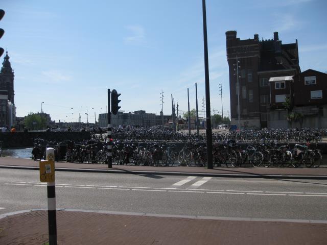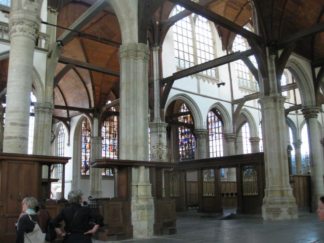 Nun stand der Bummel ins Stadtzentrum, vorbei an einem von zahlreichen Fahrradparkplätzen rund um den Hauptbahnhof, zur Alten Kirche auf dem Programm. Die Tonnnengewölbe dieser Kirche wurden aus Holz hergestellt. Die Alte Kirche steht, wie alle alten Gebäude dieser Epoche auf Holzpfählen. Gewölbe aus Stein sind viel zu schwer, wodurch die Alte Kirche schon längst versunken wäre.